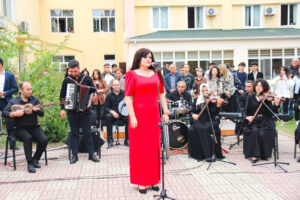 Tədbir bədii hissə ilə davam edib. Şəki şəhər 4 nömrəli Uşaq Musiqi Məktəbinin vokal müəllimi Fərqanə Qasımova “Çırpınırdı Qara dəniz” mahnısını ifa edib və tamaşaçılar tərəfindən böyük rəğbətlə qarşılanıb.