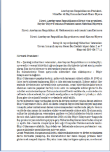 Müraciətin surətləri Birinci vitse-prezident Mehriban Əliyevaya, Ali Məhkəmənin sədri İnam Kərimova və Baş prokuror Kamran Əliyevə də göndərilib.