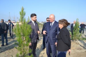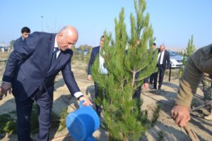 280 metrlik ərazidə birinci və ikinci Qarabağ müharibəsi şəhidlərinin xatirəsinə yaradılmış “Qəhrəmanlar bağı”nda şam ağacı tinglıri əkilib.