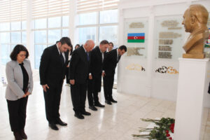 Öncə dahi şəxsiyyətin MDU-da olan büstünün önünə gül dəstələri düzülüb, onun əziz xatirəsi dərin hörmət və ehtiramla yad edilib.